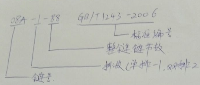 下面的鏈號08A,我們經(jīng)常說的4分鏈輪相對應(yīng),以此類推16A就是1寸。其實是指的是節(jié)距P,英寸單位表示節(jié)距。