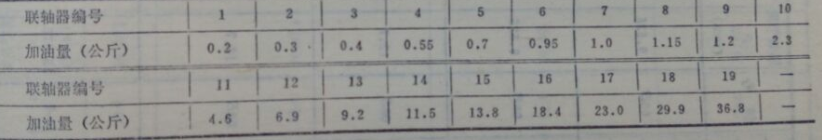 聯(lián)軸器的咬合應(yīng)在油浴內(nèi)工作。潤滑油一般可用機(jī)械油。露天工作的聯(lián)軸器,在天氣寒冷時(shí),使用10號汽油機(jī)潤滑油。聯(lián)軸器的油容量見圖片